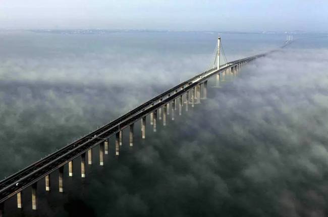 Mais longa ponte do mundo, demorou quatro anos para ser construída e custou cerca de US$ 8,5 bilhões. A ponte é usada para a linha de trem de alta velocidade, ligando as cidades de Xangai e Nanjing _a linha completa possui 1.317 km de extensão.