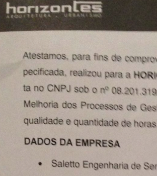 Entre os meses de maio a agosto de 2014 a Saletto executou importante trabalho de consultoria para a Horizontes Arquitet ...