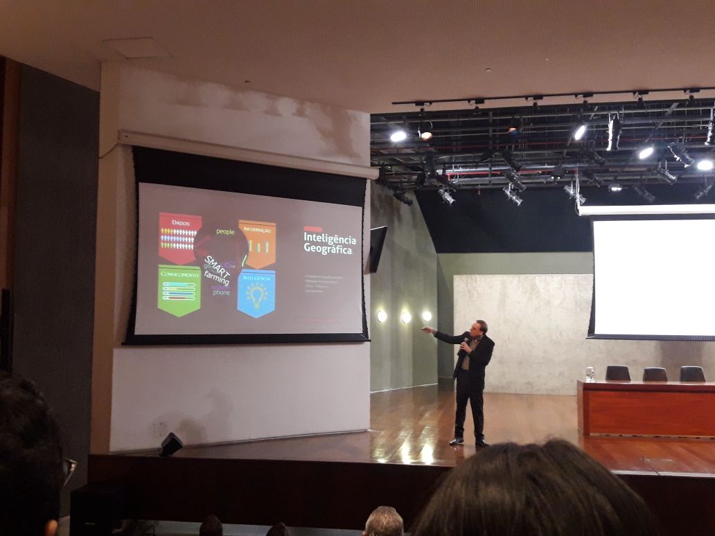 O evento teve a participação do palestrante Abmael Vereda Júnior, especialista em Geoprocessamento e doutor em Engenharia Urbana, que apresentou o tema “Para além do geoprocessamento : a sociedade da inteligência geográfica”. Segundo Abimael todos podem fazer parte da revolução geoespacial, pois temos uma série de dispositivos e sensores interligados o que facilita uma nova maneira de interagir e transformar a sociedade.